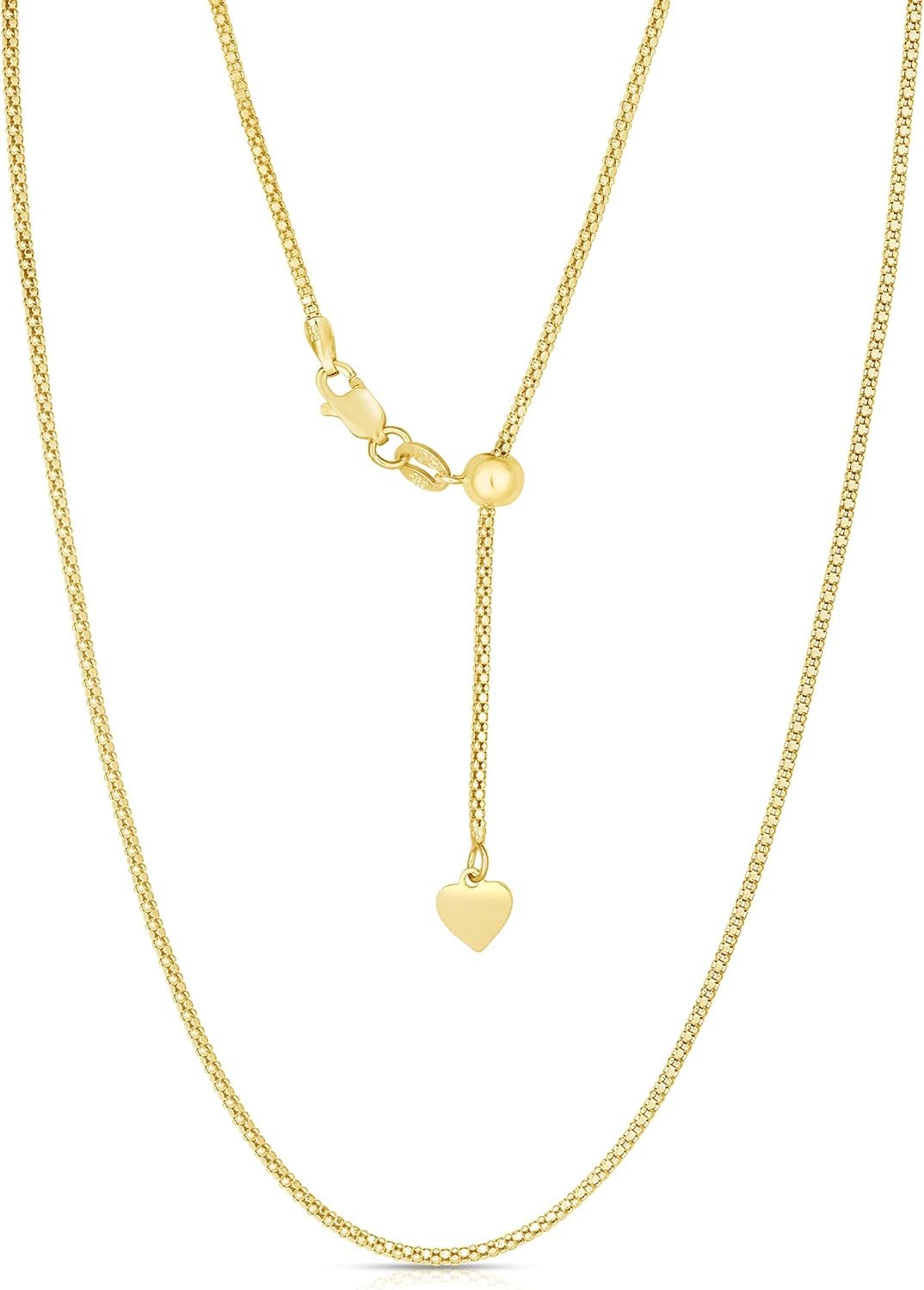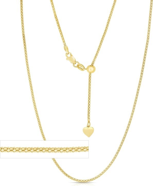 14k Fine Gold 1.3mm Adjustable Round Popcorn Chain Necklace, 22 Inch