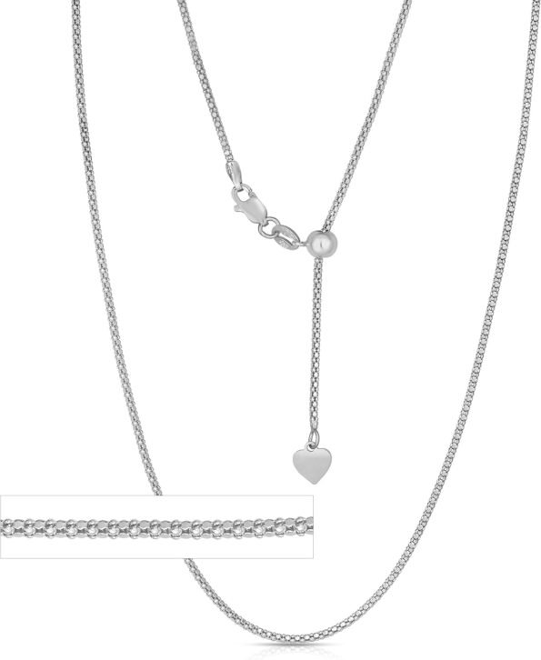 14k Fine Gold 1.3mm Adjustable Round Popcorn Chain Necklace, 22 Inch