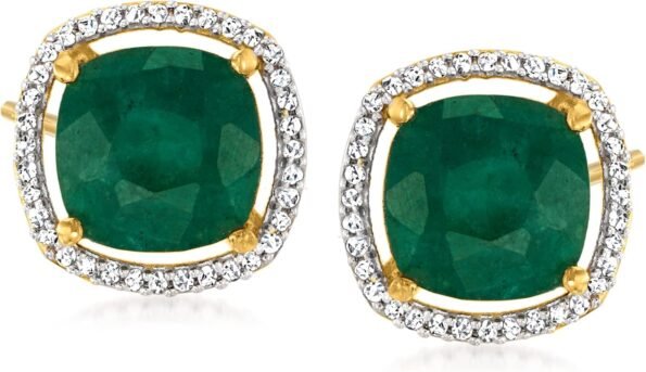 - 18kt yellow gold over sterling silver, emerald and diamond earrings for women.