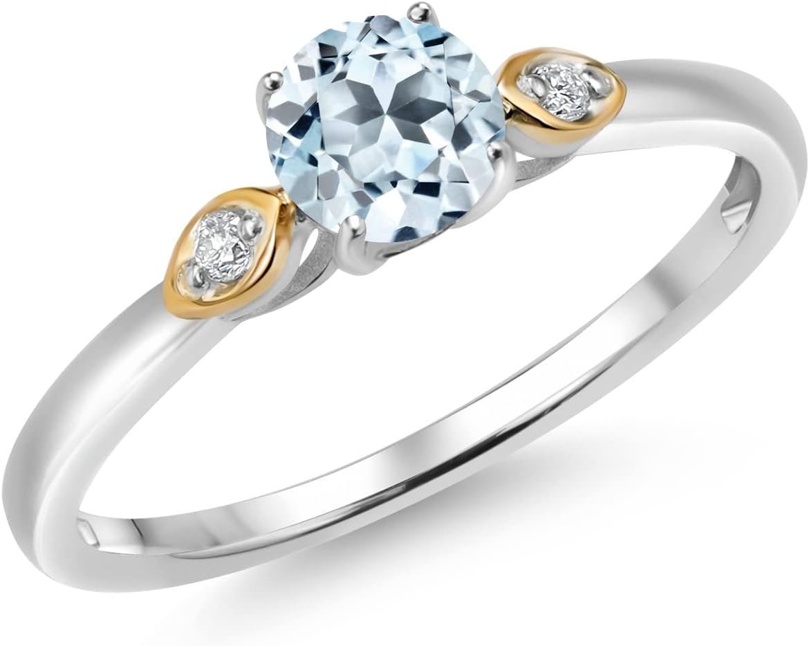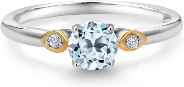 - Exceptional Quality and Craftsmanship: This stunning 3-stone engagement ring features a 5MM round gemstone birthstone, flanked by two sparkling white lab-grown diamonds. Crafted from high-quality 925 sterling silver and accented with 10K yellow gold, this ring ensures durability and a luxurious finish that will last a lifetime.