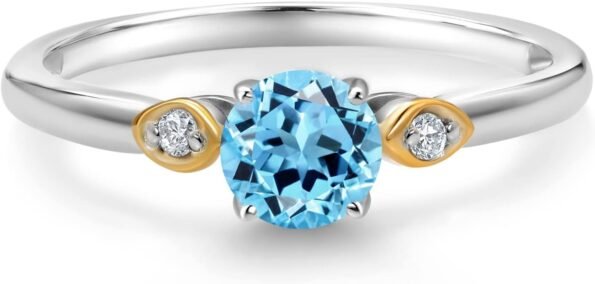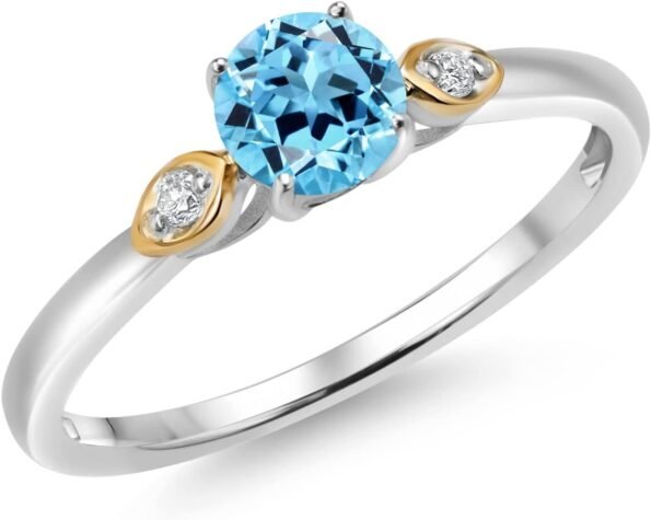 - Exceptional Quality and Craftsmanship: This stunning 3-stone engagement ring features a 5MM round gemstone birthstone, flanked by two sparkling white lab-grown diamonds. Crafted from high-quality 925 sterling silver and accented with 10K yellow gold, this ring ensures durability and a luxurious finish that will last a lifetime.