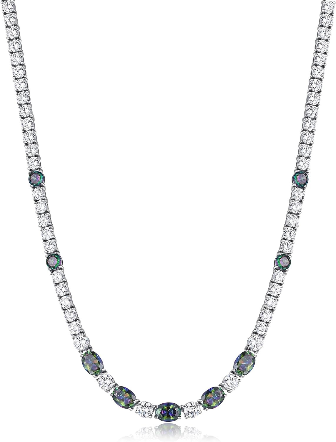 Sterling Silver Tennis Necklace 4mm 18 inch Birthstone Necklace with 6 * 8mm Oval Gemstone Luxury Fine Birthday Jewelry Gifts for Women